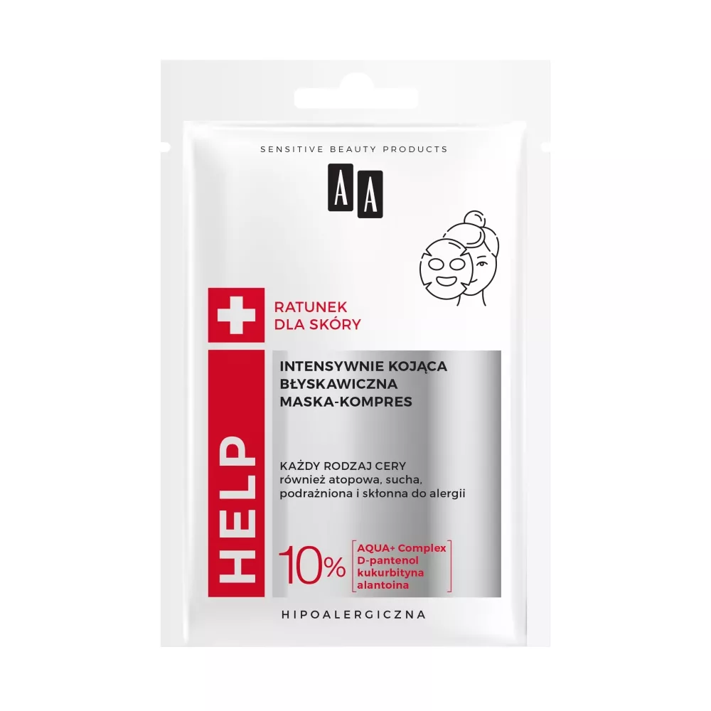 AA Help to zaawansowany dermoprogram pielęgnacyjny, który oferuje skuteczną pomoc dla przesuszonej, podrażnionej i wrażliwej skóry. Maska-kompres na tkaninie jest idealnym rozwiązaniem dla skóry narażonej na działanie czynników zewnętrznych.