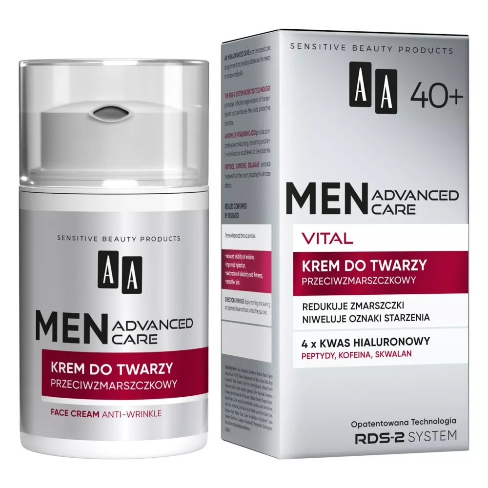Główne zalety kremu przeciwzmarszczkowego AA Men Advanced Care Vital 40+