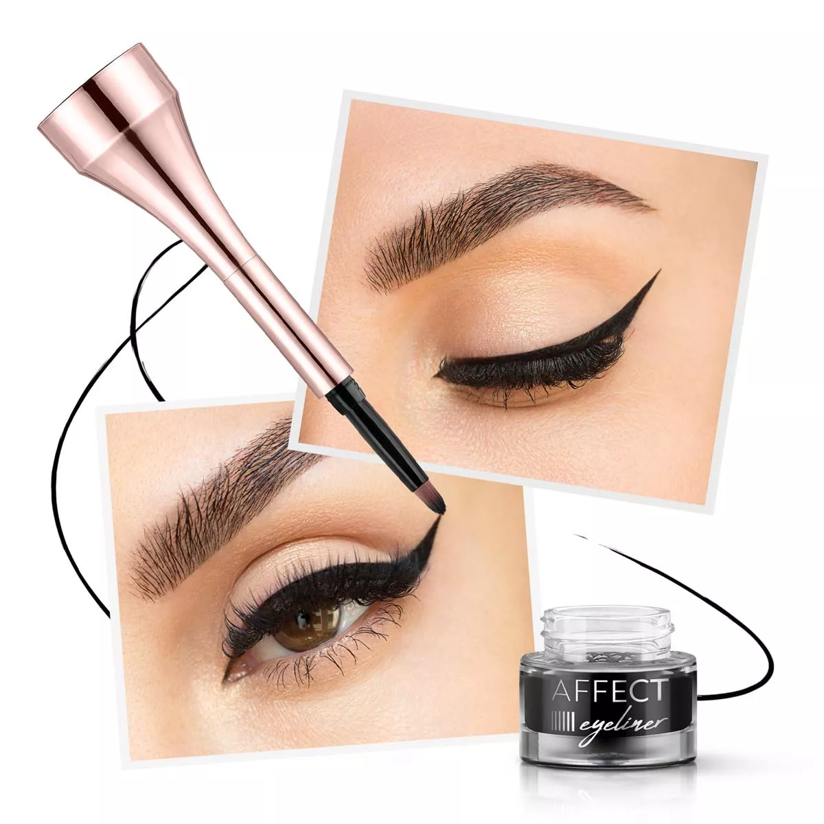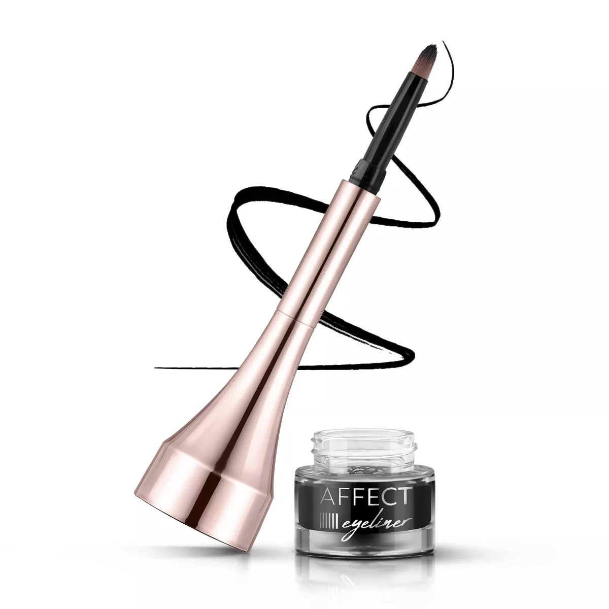 Rozłącz górną część zakrętki zamykającej opakowanie w której schowany jest pędzelek. Następnie odwróć pędzelek aplikatorem do góry i połącz z nasadką na klik. Otwórz słoiczek z eyelinerem. Po użyciu zakręć opakowanie, aby zapobiec wysychaniu produktu. Po użyciu eyelinera wyczyść pędzelek płynem do demakijażu lub mycia pędzli.