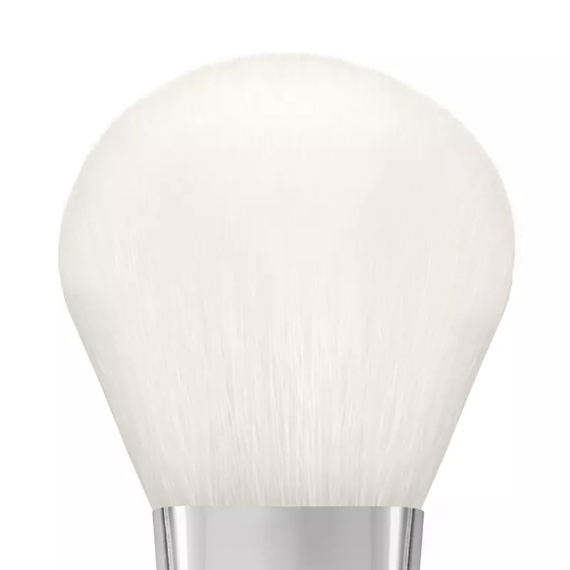 Pędzel do pudru, który dzięki swoim niedużym rozmiarom może pełnić również funkcję pędzla do bronzera lub różu. Puchaty, delikatnie spłaszczony kształt pędzla ułatwia aplikację produktu bez pylenia się czy osypywania. Delikatne, niezbyt mocno zbite włosie umożliwia modelowanie kształtu twarzy oraz miękkie roztarcie produktów. Wykonany z włókna syntetycznego i naturalnego włosia koziego.