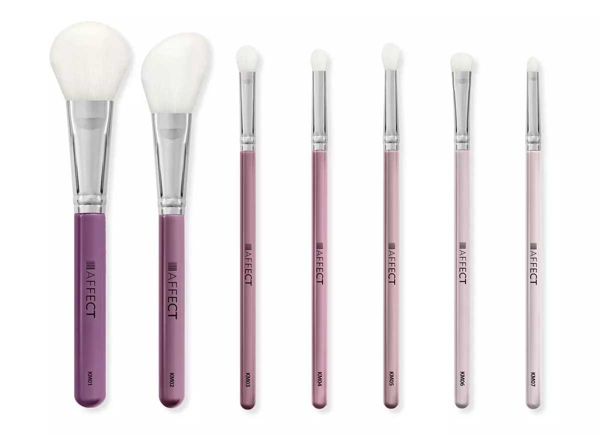 Zestaw siedmiu wielofunkcyjnych pędzli do makijażu, przeznaczonych zarówno dla profesjonalistów, jak i amatorów makijażu. Pędzle wykonane są z wysokiej jakości mieszanego włosia, które ułatwia rozprowadzenie produktu na powierzchni skóry. Posiadają wygodne, ergonomicznie zaprojektowane trzonki, aby idealnie leżały w dłoniach i zapewniały komfortową aplikację. Każdy z nich ma unikalny kolor od ciemnofioletowego do bladoróżowego oraz indywidualny numer, co ułatwia w dowolnej chwili sięgnąć po odpowiedni pędzel.