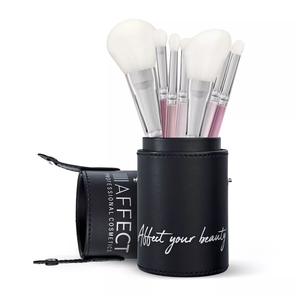 Zestaw zawiera 7 wielofunkcyjnych pędzli do makijażu, przeznaczonych zarówno dla profesjonalistów, jak i amatorów makijażu. Pędzle wykonane są z wysokiej jakości mieszanego włosia, które ułatwia rozprowadzenie produktu na powierzchni skóry. Posiadają wygodne, ergonomicznie zaprojektowane trzonki, aby idealnie leżały w dłoniach i zapewniały komfortową aplikację. Każdy z nich ma unikalny kolor od ciemnofioletowego do bladoróżowego oraz indywidualny numer, co ułatwia w dowolnej chwili sięgnąć po odpowiedni pędzel. Poręczne etui w formie tuby idealnie sprawdzi się zarówno do przechowywania pędzli na co dzień oraz w trakcie podróży.