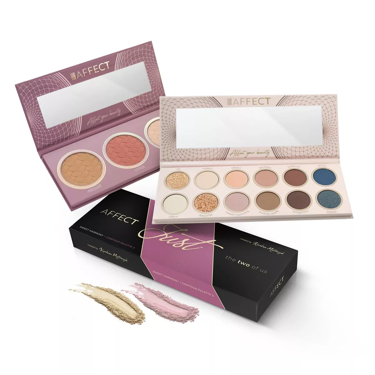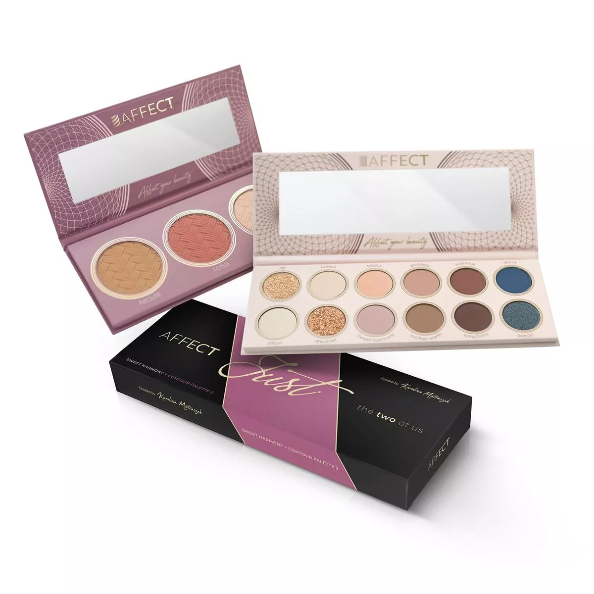 W mocno napigmentowanych tonacjach, nutach delikatnego różu, brązów i subtelnego blasku bestsellerowej kolekcji Sweet Harmony - idealnie dopasowany duet profesjonalnych palet cieni do oczu i konturowania twarzy w upominkowym secie Just the Two Of Us. Zestaw palet to idealny prezent, który zadowoli zarówno dla pasjonatów makijażem, ale będzie to też świetny dla osób, które dopiero rozpoczynają swoją przygodę z makijażem.