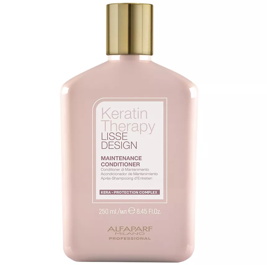 Kremowa odżywka do włosów Alfaparf Keratin Therapy Lisse Design podtrzymuje efekt wygładzenia i pomaga zapanować nad niesfornymi kosmykami. Odżywkę polecamy do stosowania po zabiegu prostowania keratynowego. W skład odżywki wchodzi olej babassu i keratyna. Włosy po użyciu kosmetyku są miękkie i gładkie, łatwe do rozczesania. Produkt nie zawiera parabenów, siarczanów, soli.