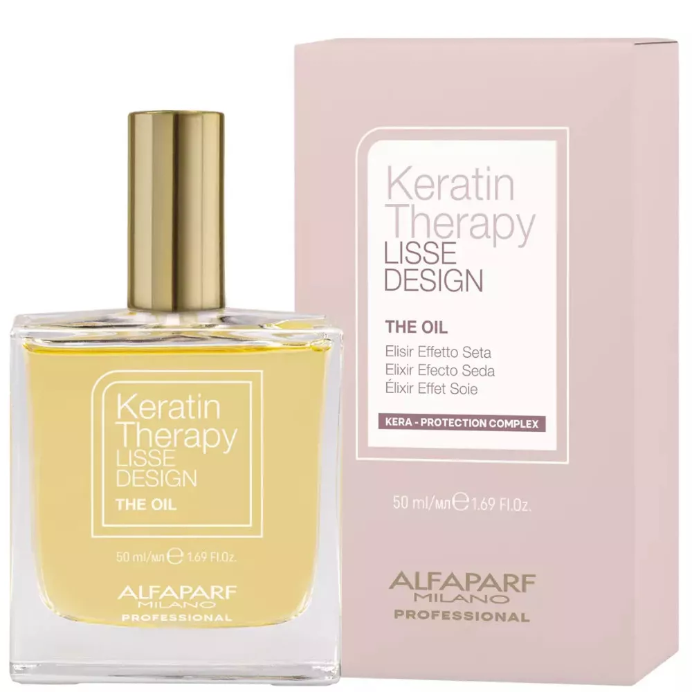 Wygładzający olejek do włosów po keratynowym prostowaniu Alfaparf Keratin Therapy Lisse Design sprawia, że pasma na długo pozostają miękkie, gładkie i jedwabiste. Formuła bazuje na olejku babassu. Co ważne, olejek Alfaparf zapobiega rozdwajaniu końcówek i tworzy na powierzchni pasm ochronny film. Formuła jest lekka, więc nie musisz się obawiać obciążenia.