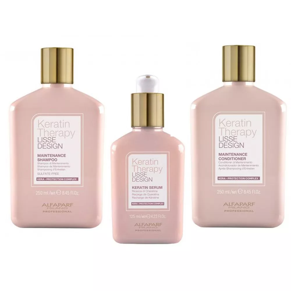 Alfaparf Milano Keratin Therapy Lisse Design, zestaw do włosów po keratynowych prostowaniu włosów zawiera: