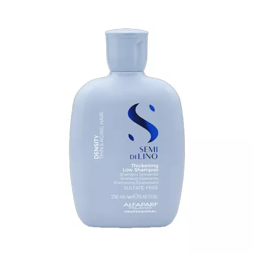 Alfaparf Semi di Lino Density to szampon pogrubiający do włosów cienkich i przerzedzonych, który wzmacnia i zagęszcza włosy od nasady aż po końce. Zawiera specjalny kompleks Density Complex, który stymuluje wzrost włosów i zapobiega ich wypadaniu. Szampon delikatnie oczyszcza skórę głowy i włosy, nie obciążając ich i nie wysuszając. Pozostawia włosy miękkie, lśniące i pełne objętości.