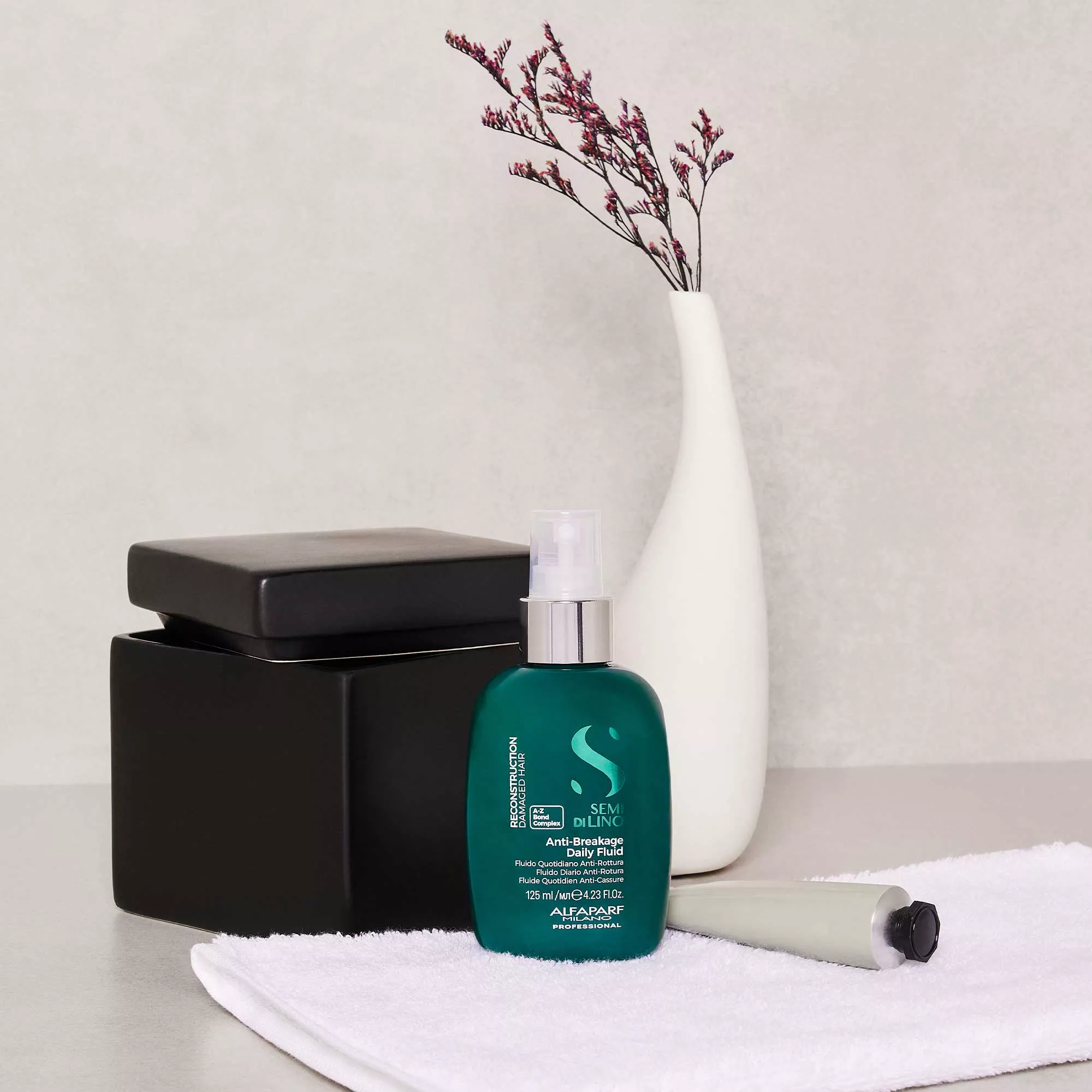 Fluid regenerujący Alfaparf Semi di Lino Reconstruction przeznaczony jest do codziennego użytku. Doskonale regeneruje włosy zniszczone, chroni pasma przed łamaniem oraz zamyka łuski włosowe. Dodatkowo, każdego dnia nasze włosy wystawiane są na wiele szkodliwych czynników. Na jedne z nich mamy wpływ, a na inne niestety nie. Do tej drugiej grupy zaliczamy przede wszystkim szkodliwe zanieczyszczenia powietrza, np. smog czy spaliny. Włókna włosowe zaczynają być słabe a włosy robią się zniszczone i matowe. Na szczęście na ratunek przychodzi fluid regenerujący Alfaparf Semi di Lino Reconstruction. Kosmetyk ten ma działanie wzmacniające, regeneracyjne oraz odbudowujące. Ponadto testy przeprowadzone na włosach zniszczonych wykazały, że moc włókna włosa zwiększa się o 14%. Maska świetnie wzmacnia osłabione włosy oraz regeneruję korę włosa, zwiększając odporność pasm.
