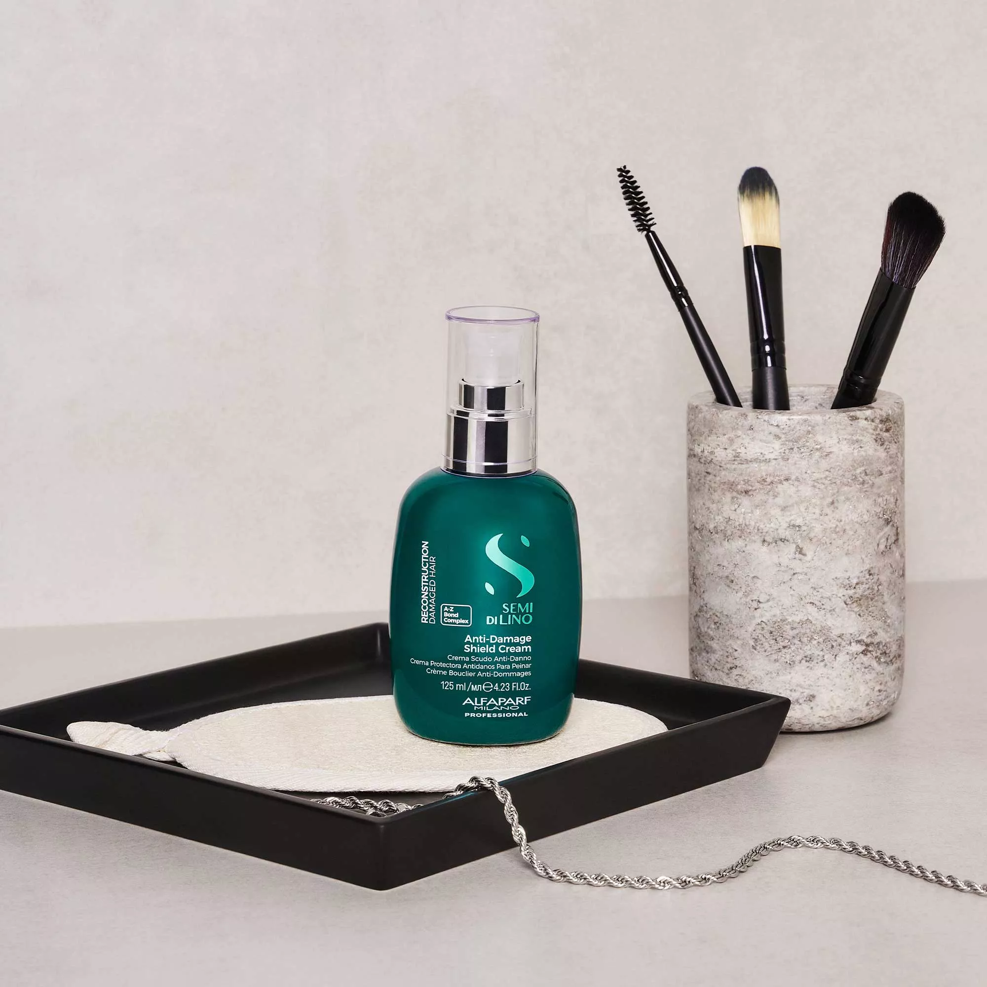 Anti-Damage Shield Cream finalizuje proces rekonstrukcji poprzez poprawę odporności i elastyczności włókna włosa oraz stworzenie skutecznej tarczy ochronnej wokół włosa, chroniąc go przed ciepłem. Jest polecany do zniszczonych włosów od średnich do grubych.