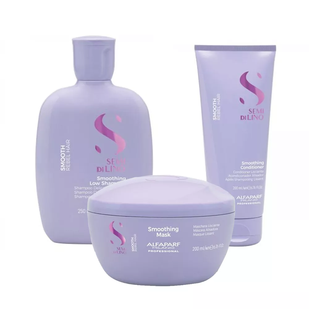 Zapomnij o niezdyscyplinowanych włosach, pozbawionych blasku i witalności. Sięgnij po szampon wygładzający Alfaparf Semi di Lino Smooth, który pomoże kontrolować włosy, zadziała nawilżająco i wygładzająco. Kosmetyk nie zawiera siarczanów i jest bardzo delikatny dla włosów. Zapewnia skuteczne oczyszczanie bez podrażniania. Sięgnij po odżywkę wygładzającą Alfaparf Semi di Lino Smooth, która pomoże kontrolować włosy, zadziała nawilżająco i wygładzająco. Kosmetyk pomaga rozplątać niesforne włosy i ułatwia ich układanie. Działa też dyscyplinująco, ułatwiając codzienną stylizację. Sięgnij po maskę wygładzającą Alfaparf Semi di Lino Smooth, która pomoże kontrolować włosy, zadziała nawilżająco i wygładzająco. Kosmetyk pomaga rozplątać niesforne włosy i ułatwia ich układanie.