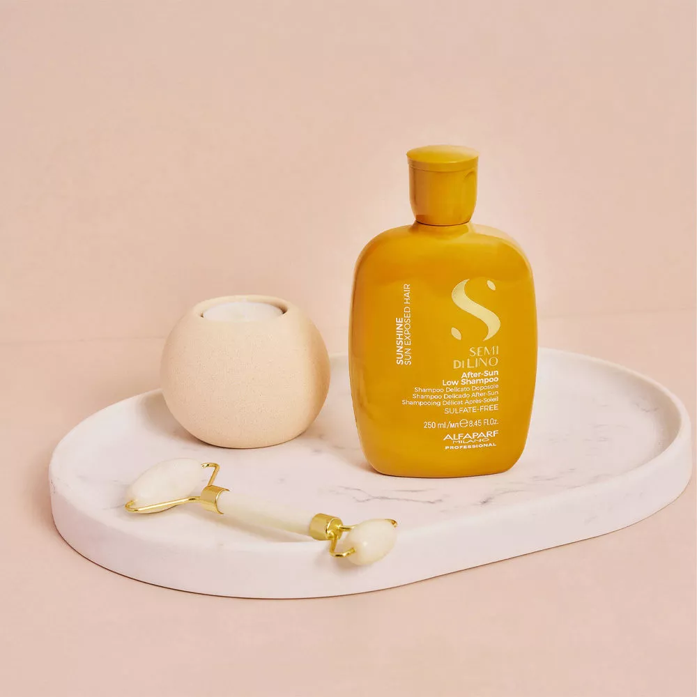 Odkryj wyjątkową pielęgnację dla włosów narażonych na działanie słońca z szamponem Alfaparf Milano Semi di Lino Sunshine After-Sun. Ten specjalistyczny produkt nie tylko delikatnie oczyszcza włosy, ale także chroni ich strukturę oraz kolor przed szkodliwym promieniowaniem UV, przesuszeniem i puszeniem się. Idealny towarzysz na letnie dni, który zadba o Twoje włosy nawet po intensywnej ekspozycji na słońce.