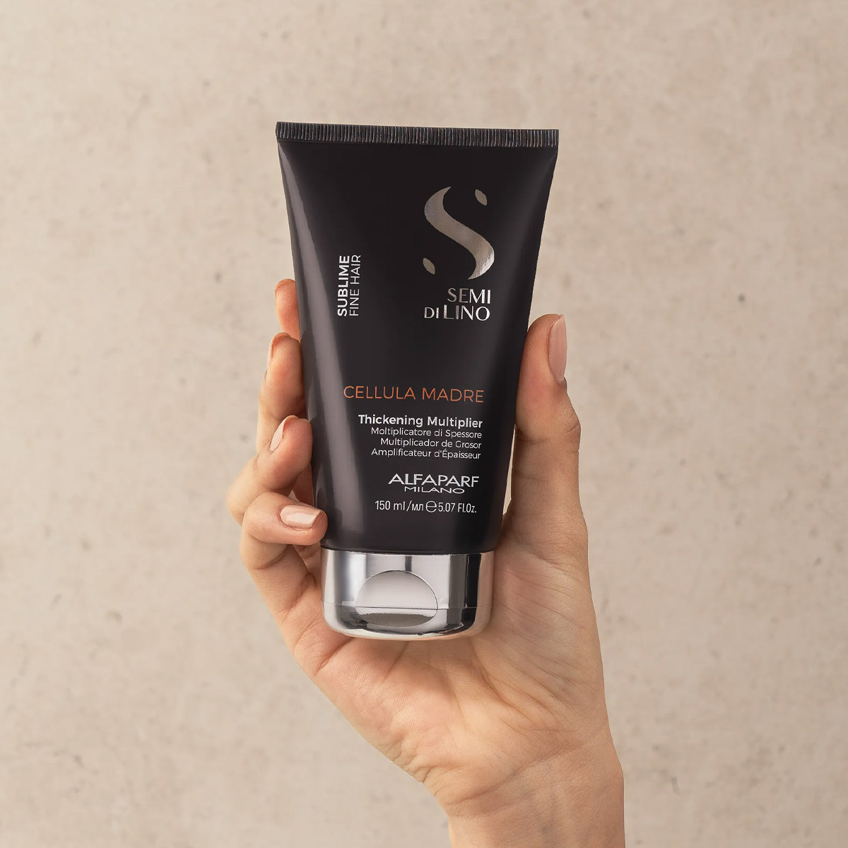 Odkryj nowy wymiar objętości swoich włosów z Alfaparf Semi di Lino Cellula Madre ? innowacyjnym multiplikatorem dodającym objętości, stworzonym specjalnie do pielęgnacji włosów cienkich, delikatnych i pozbawionych życia. To profesjonalny preparat o pojemności 150 ml, który dzięki zaawansowanej formule z komórkami macierzystymi z arganowca wzmacnia włosy, zwiększa ich objętość i przywraca naturalny blask, nie obciążając ich przy tym nawet w najmniejszym stopniu.