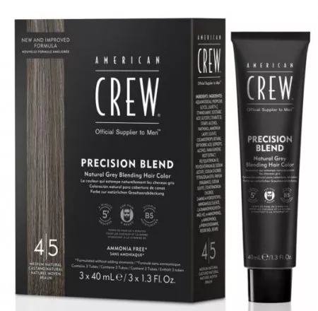 Odsiwiacz American Crew Precision Blend powstał specjalnie z myślą o mężczyznach. Kosmetyk ten nie powoduje zmiany koloru włosa, jedynie przywraca jego naturalny kolor. W związku z tym można go stosować zarówno do całkowitego krycia, jak i do melanżu siwych włosów. Pasma w efekcie wyglądają zdrowo i bardzo naturalnie. Doskonały dla Panów, którzy chcą dyskretnych zmian.