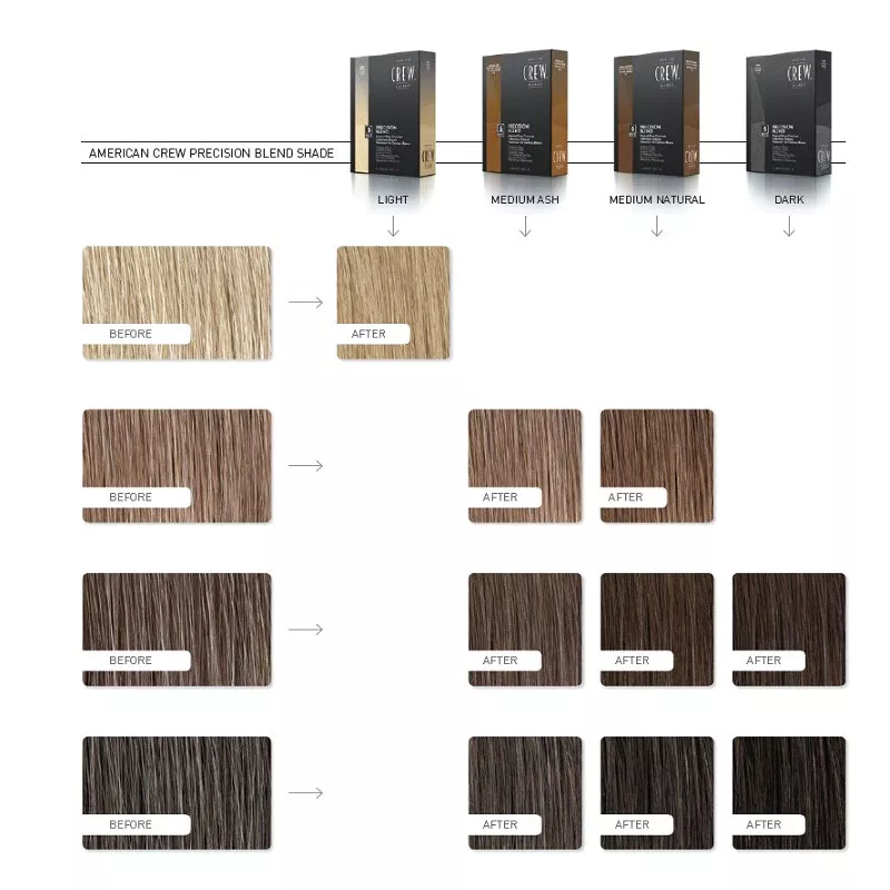 Odsiwiacz American Crew Precision Blend powstał specjalnie z myślą o mężczyznach. Kosmetyk ten nie powoduje zmiany koloru włosa, jedynie przywraca jego naturalny kolor. W związku z tym można go stosować zarówno do całkowitego krycia, jak i do melanżu siwych włosów. Pasma w efekcie wyglądają zdrowo i bardzo naturalnie. Doskonały dla Panów, którzy chcą dyskretnych zmian.