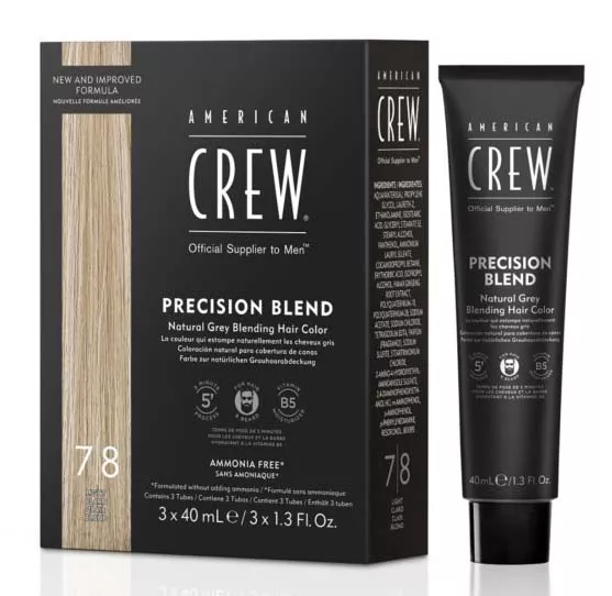 Odsiwiacz American Crew Precision Blend powstał specjalnie z myślą o mężczyznach. Kosmetyk ten nie powoduje zmiany koloru włosa, jedynie przywraca jego naturalny kolor. W związku z tym można go stosować zarówno do całkowitego krycia, jak i do melanżu siwych włosów. Pasma w efekcie wyglądają zdrowo i bardzo naturalnie. Doskonały dla Panów, którzy chcą dyskretnych zmian.