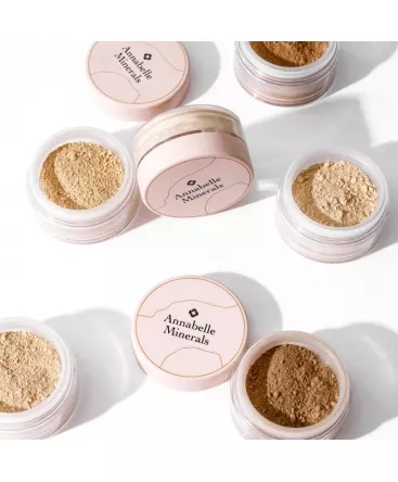 Annabelle Minerals, podkład mineralny kryjący, Golden Medium to idealne rozwiązanie dla osób pragnących uzyskać trwały i naturalnie wyglądający makijaż. Formuła wzbogacona zwiększoną zawartością dwutlenku tytanu skutecznie maskuje przebarwienia, niedoskonałości cery i zaczerwienienia, zapewniając gładką i jednolitą cerę.