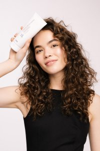 - Niewielką ilość szamponu rozprowadź na mokrej skórze głowy.