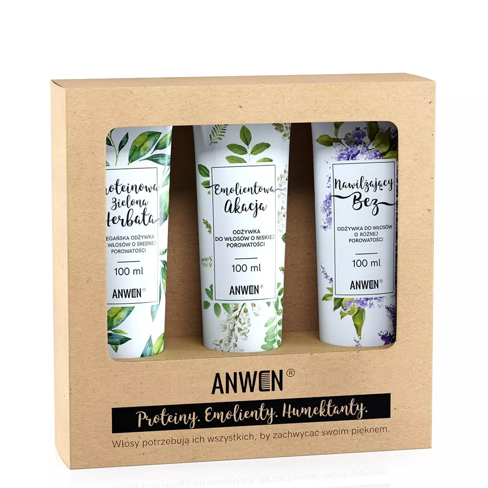 Zestaw trzech odżywek Anwen do włosów o niskiej porowatości dostarcza pasmom wszystkich składników potrzebnych do zachowania równowagi PEH włosów. Zawiera emolienty, humektanty i proteiny, które są idealnie dobrane do włosów o niskiej porowatości - normalnych, lekkich, gładkich i zdrowych. Regularne stosowanie odżywek sprawia, że włosy stają się miękkie, lśniące, sprężyste i zdrowe.