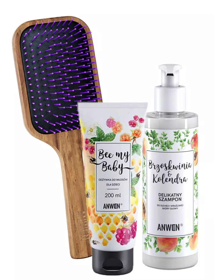 Czesanie włosów kojarzyło się wam z koszmarem? Dziecko płakało i uciekało przed szczotką? Zamień tę rutynową czynność w bajkę z dobrym zakończeniem. Pomoże Ci w tym zestaw dla dzieci Anwen. Odżywka do włosów dla dzieci Anwen Bee My Baby została tak opracowana, żeby ułatwiać rozczesywanie dziecięcych włosów. Delikatny szampon z kolei umyje włosy bez podrażnień i przywróci im miękkość. Szczotka została tak opracowana, żeby nie ciągnąc i nie szarpać. Z jej pomocą można bezboleśnie rozczesać włosy. Uważaj, bo jesteśmy pewni, że będziesz pożyczać szczotkę od swojego dziecka!