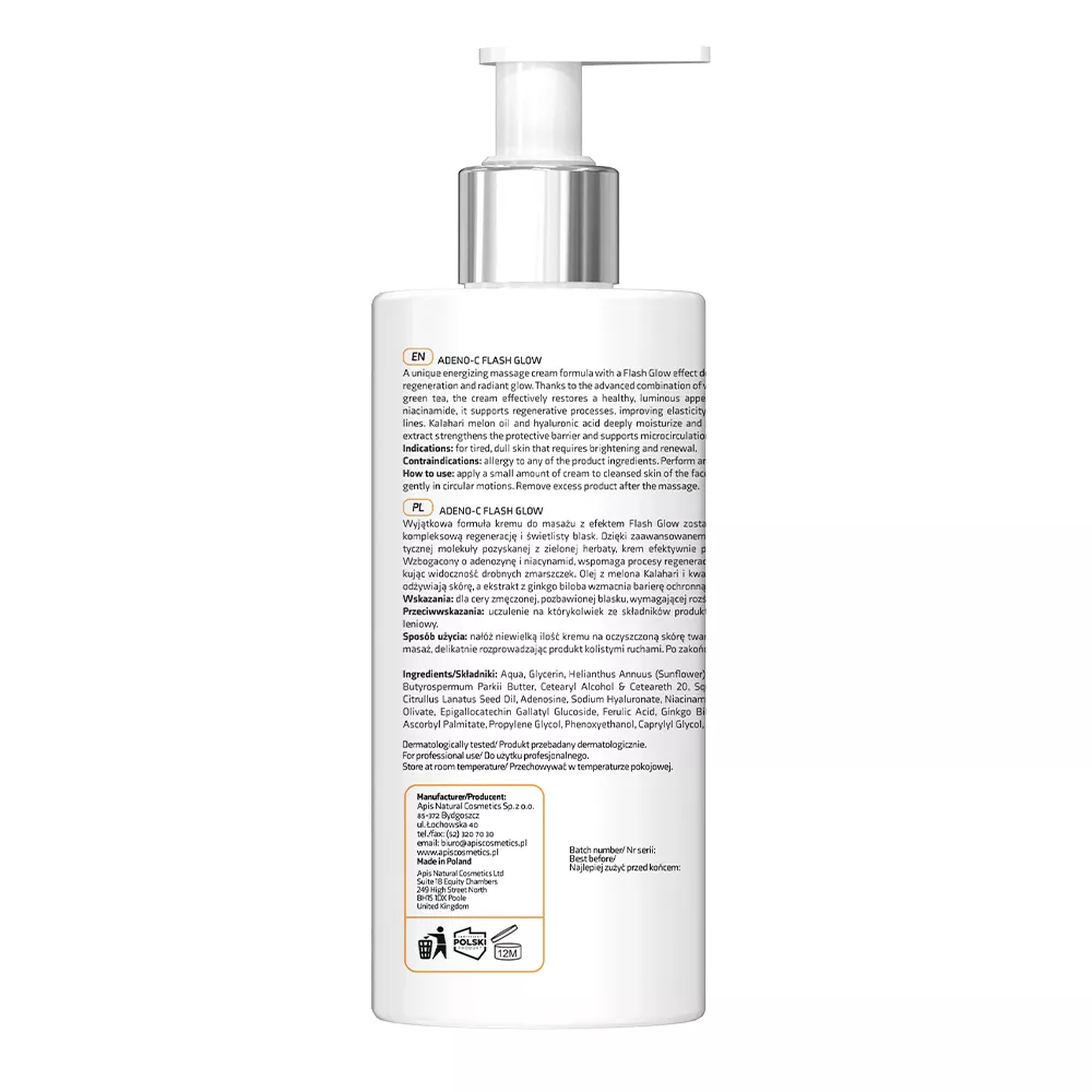 Apis Adeno-C Flash Glow to energetyzujący krem do masażu twarzy, który dzięki swojej wyjątkowej formule gwarantuje natychmiastowy efekt rozświetlenia i regeneracji skóry. Zawiera zaawansowane połączenie witaminy C i prebiotycznej molekuły z zielonej herbaty, które przywracają skórze zdrowy, promienny wygląd. Dodatkowo adenozyna i niacynamid wspierają procesy regeneracyjne, poprawiając elastyczność skóry i redukując widoczność drobnych zmarszczek.