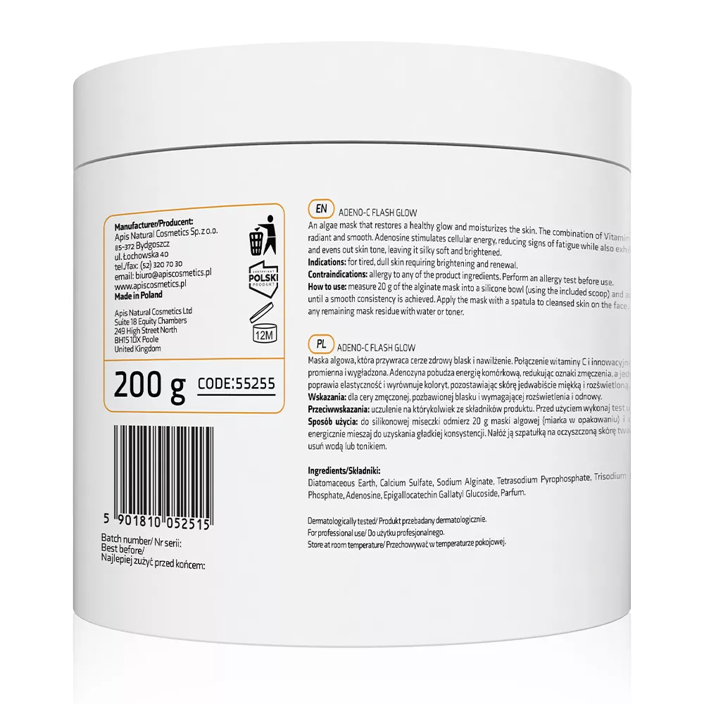 Apis Adeno-C Flash Glow to wyjątkowa maska algowa, która przywraca cerze zdrowy blask i pełne nawilżenie. Dzięki połączeniu witaminy C i innowacyjnej prebiotycznej molekuły z zielonej herbaty, Twoja skóra stanie się promienna i wygładzona. Adenozyna w formule pobudza energię komórkową, redukując oznaki zmęczenia oraz wykazuje działanie przeciwstarzeniowe. Intensywne nawilżenie, poprawa elastyczności i wyrównanie kolorytu to tylko niektóre z efektów, które odczujesz, stosując tę maskę. Twoja skóra pozostanie jedwabiście miękka i rozświetlona.