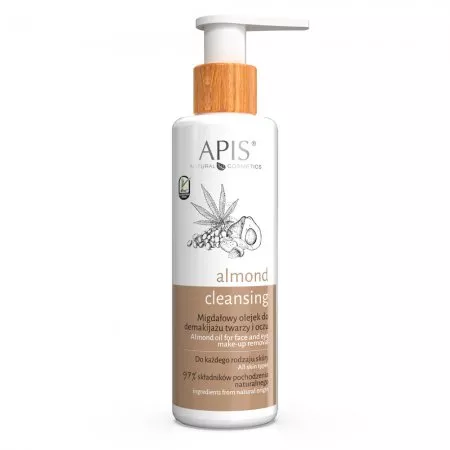 Migdałowy olejek do demakijażu twarzy i oczu Apis Almond Cleansing to niezwykle lekki i wszechstronny produkt, który zapewnia naturalne i dokładne oczyszczenie skóry. Zawiera unikalną kompozycję w 100% naturalnych olejów roślinnych, które w połączeniu z wodą zmieniają się w emulsję.