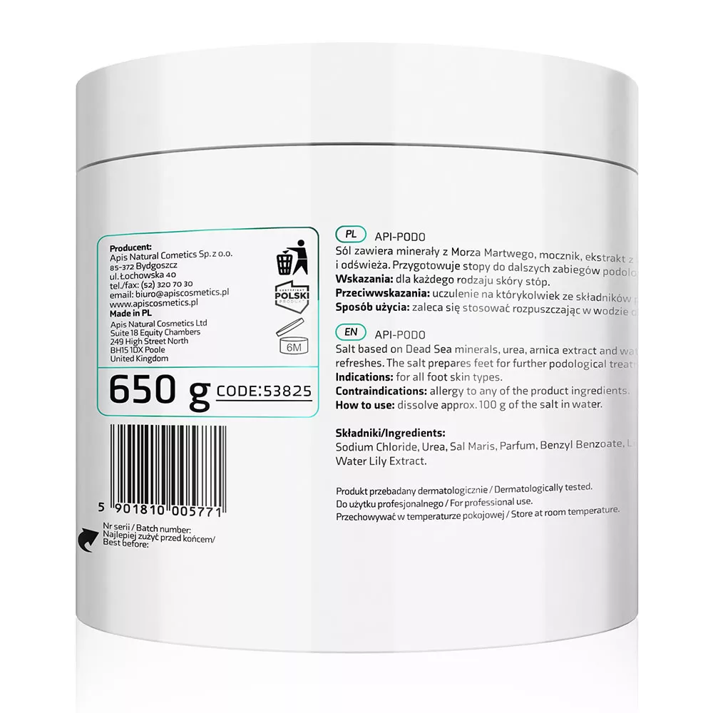 Apis Api-Podo Sól zmiękczająca do stóp z mocznikiem to doskonały wybór dla każdego rodzaju skóry stóp. Produkt zawiera cenne minerały z Morza Martwego, mocznik oraz ekstrakty z arniki i lilii wodnej, dzięki czemu skutecznie zmiękcza zrogowaciałą skórę, oczyszcza i odświeża stopy, przygotowując je do dalszych zabiegów podologicznych.
