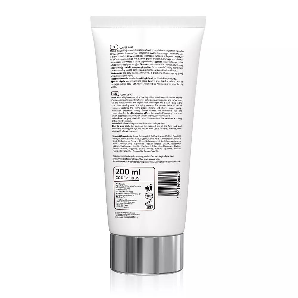 Apis Coffee Shot to bioaktywna maska z kwasem kawowym i olejem z nasion kawy, która oferuje intensywną pielęgnację skóry. Dzięki wysokiej zawartości składników aktywnych oraz aromatycznemu zapachowi kawy, maska ta skutecznie zapobiega degradacji włókien kolagenu i elastyny, spowalniając procesy starzenia. Apis Coffee Shot pomaga redukować zmarszczki i przywraca skórze odpowiednią gęstość, jednocześnie wykazując silne właściwości depigmentacyjne. Dzięki ekstraktowi z kwiatów maku i kwasowi hialuronowemu, skóra staje się pełniejsza, promienna i wizualnie odmłodzona.