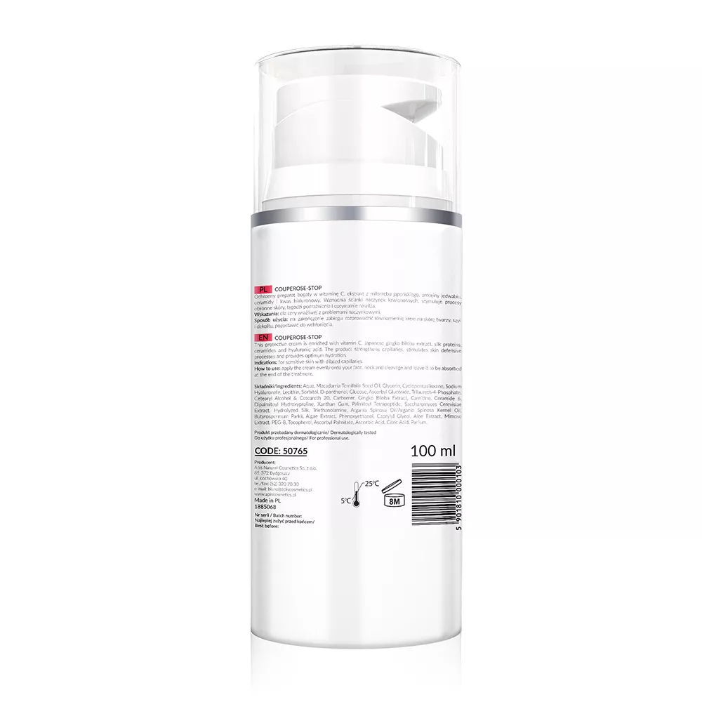 Apis Couperose-stop to krem stworzony specjalnie dla osób z cerą wrażliwą i z problemami naczynkowymi. Ten ochronny preparat jest bogaty w składniki aktywne takie jak witamina C, ekstrakt z miłorzębu japońskiego, proteiny jedwabiu, ceramidy oraz kwas hialuronowy. Dzięki tym składnikom krem wzmacnia ścianki naczynek krwionośnych, stymuluje procesy immunologiczne skóry oraz zapewnia optymalne nawilżenie.