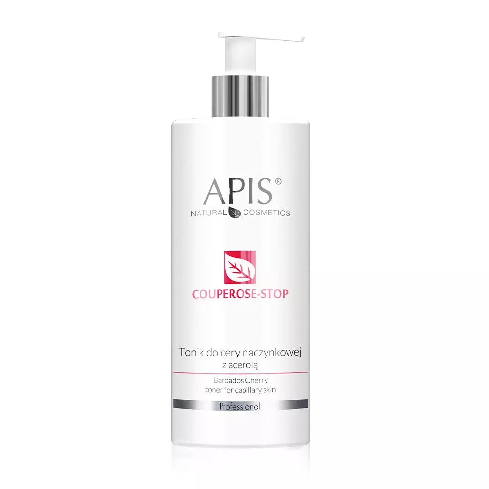 Apis Couperose Stop to delikatny tonik stworzony specjalnie dla cery wrażliwej i z rozszerzonymi naczynkami krwionośnymi. Formuła oparta jest na ekstrakcie z aceroli, który jest bogaty w kwas askorbinowy oraz beta-karoten. Dodatkowo wzbogacony stabilną postacią witaminy C i ekstraktem z dzikiej róży, tonik wzmacnia i uszczelnia ścianki naczynek krwionośnych, chroniąc je przed pękaniem. Produkt intensywnie nawilża, wygładza oraz uelastycznia skórę, zapewniając jej zdrowy wygląd.