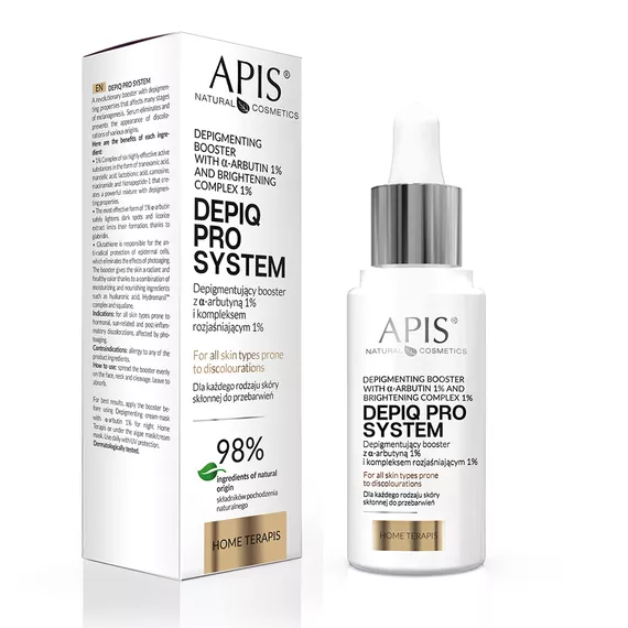 Apis Depiq Pro System depigmentujący booster to specjalistyczny preparat stworzony z myślą o skutecznej walce z przebarwieniami skóry. Działa na wielu etapach procesu melanogenezy, skutecznie niwelując istniejące przebarwienia oraz zapobiegając powstawaniu nowych. Dzięki starannie dobranym składnikom, jest idealnym rozwiązaniem dla osób poszukujących jednolitego kolorytu cery.