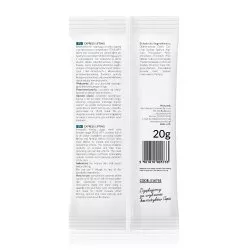 Do około 15 g maski dodać około 40 ml wody mineralnej niegazowanej. Energicznie mieszając, doprowadzić do gęstej konsystencji. Nałożyć szpatułką na skórę twarzy, szyi i dekoltu, pozostawić na 15-20 minut. Po zastygnięciu maskę usunąć przez ściągnięcie w całości, ewentualne pozostałości zmyć tonikiem.