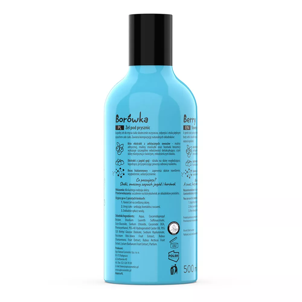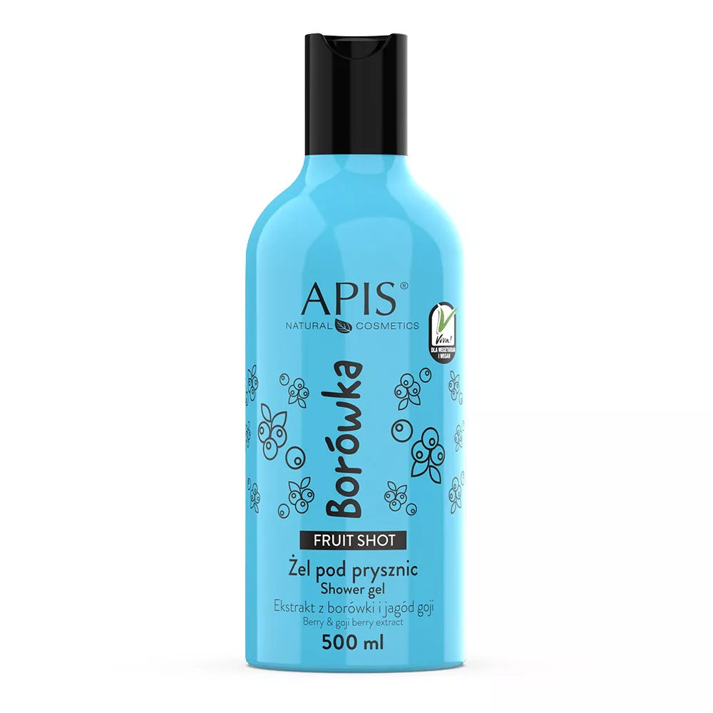 Odkryj Apis Fruit Shot, borówkowy żel pod prysznic, który łączy w sobie moc naturalnych składników, aby Twoja skóra była czysta, nawilżona i pełna blasku. Dzięki unikalnej formule z ekstraktem z borówki i jagód goji, ten żel oczyszcza, odpręża i otula całe ciało pięknym owocowym zapachem.