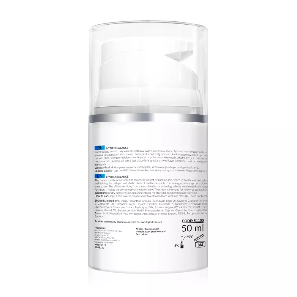 Apis Hydro Balance Home terApis Krem z kwasem hialuronowym to wyjątkowy produkt stworzony z myślą o cerze suchej, wrażliwej i wymagającej intensywnego nawilżenia. Dzięki unikalnej formule, krem błyskawicznie i długotrwale nawilża, wiążąc wodę w skórze i podtrzymując włókna kolagenowe oraz elastynowe. Skóra staje się aksamitnie gładka i zyskuje świetlisty koloryt.