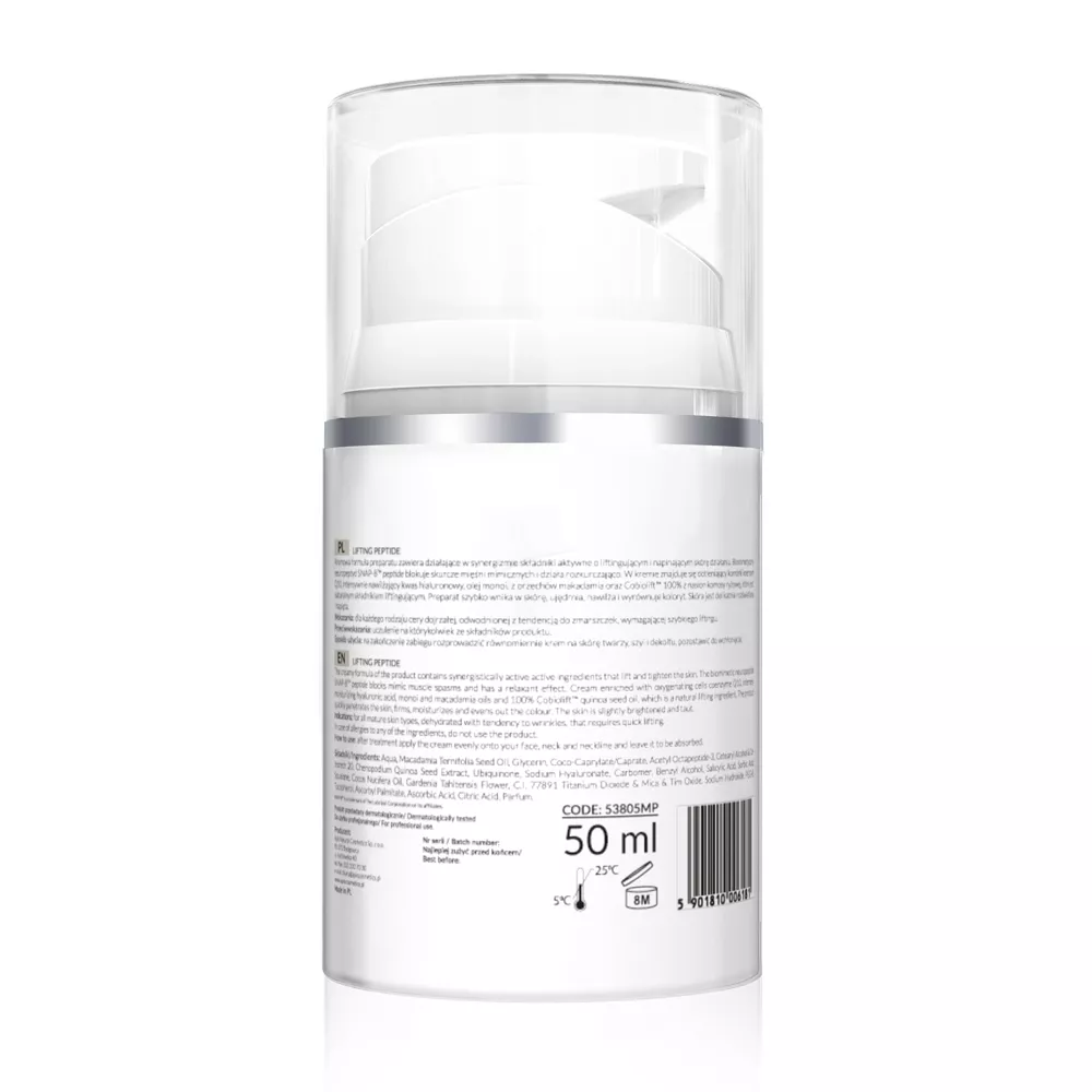 - Zawiera SNAP-8™ peptide, który blokuje skurcze mięśni mimicznych.