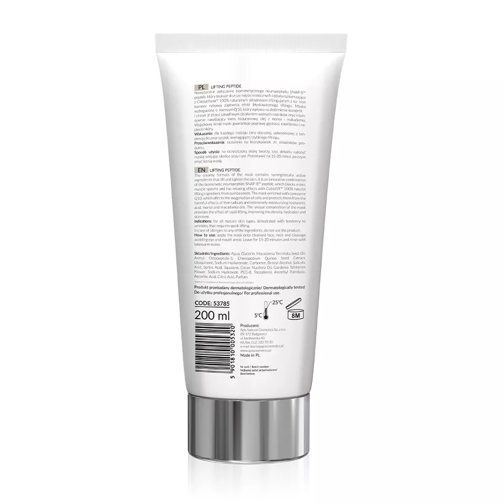 Odkryj rewolucyjną maskę liftingująco-napinającą Apis z SNAP-8™ MT peptide, stworzoną specjalnie dla każdego rodzaju cery dojrzałej, odwodnionej i skłonnej do zmarszczek, potrzebującej szybkiego liftingu. Maska łączy w sobie nowatorskie składniki, które blokują skurcze mięśni mimicznych, działając rozkurczająco i zapewniając efekt błyskawicznego liftingu. Dzięki zawartości cobiolift™, naturalnego składnika pochodzącego z nasion komosy ryżowej, Twoja skóra zyska na gęstości, nawilżeniu i napięciu.