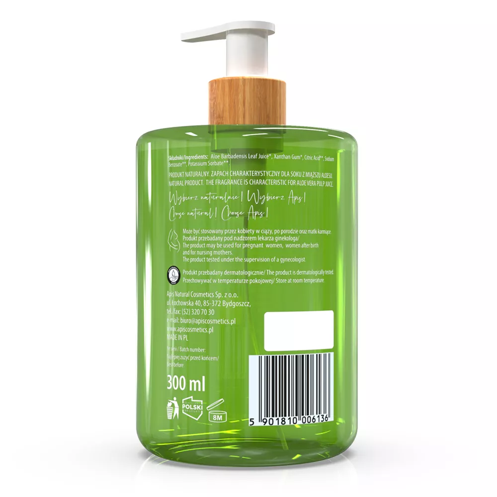 Apis Natural Aloe Vera 99% to wyjątkowy żel aloesowy do twarzy i ciała, który zapewnia Twojej skórze kompleksową pielęgnację. Dzięki zawartości 99% soku z aloesu Aloe Vera (Barbadensis), jest idealnie dostosowany do indywidualnych potrzeb skóry. Świetnie sprawdza się zarówno na twarzy, ciele, jak i włosach, oferując wielofunkcyjność i wysoką skuteczność.
