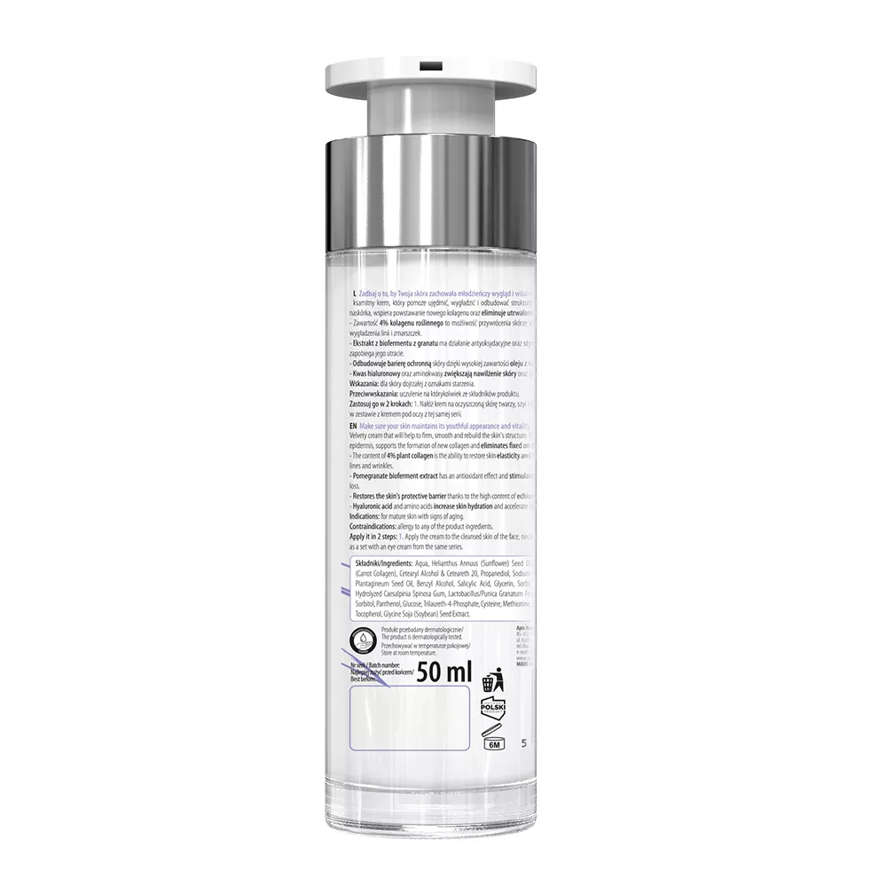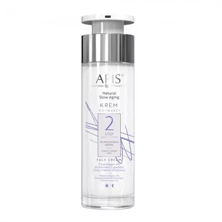 Krem do twarzy Apis Natural Slow Aging - Step 2 Wzmocniona Skóra to idealne rozwiązanie, aby Twoja skóra zachowała młodzieńczy wygląd i witalność. Aksamitna formuła kremu pomaga ujędrnić, wygładzić oraz odbudować strukturę skóry, skutecznie przyspieszając regenerację naskórka i wspierając powstawanie nowego kolagenu.