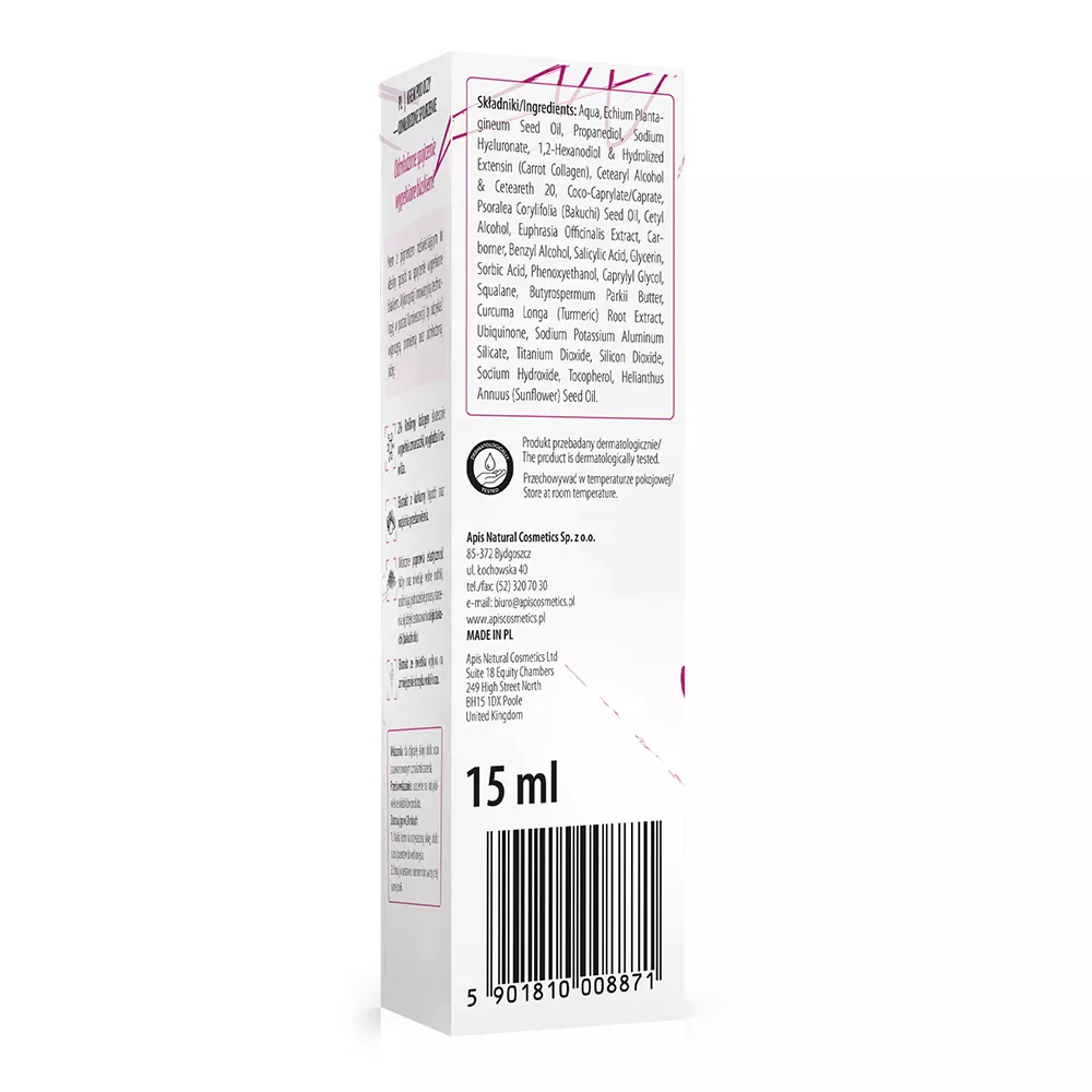 - 2% roślinny kolagen skutecznie wypełnia zmarszczki, wygładza i nawilża skórę.