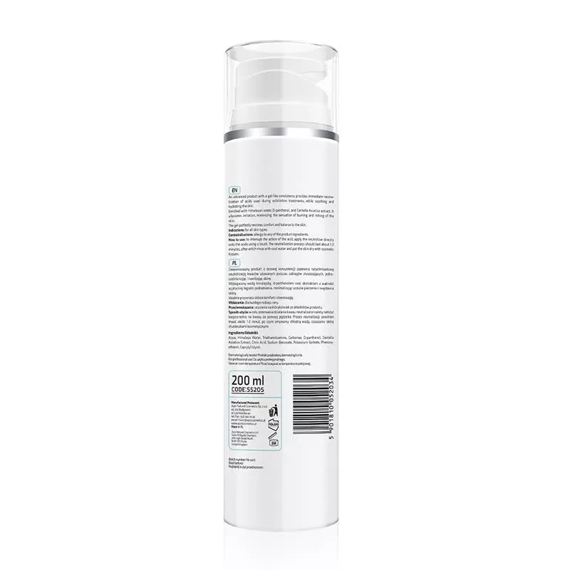 Apis, neutralizator kwasów używanych podczas zabiegów złuszczających, to zaawansowany produkt o żelowej konsystencji, który zapewnia natychmiastową neutralizację kwasów, jednocześnie kojąc i nawilżając skórę. Formuła wzbogacona wodą himalajską, d-panthenolem oraz ekstraktem z wąkrotki azjatyckiej łagodzi podrażnienia, minimalizując uczucie pieczenia i swędzenia. Idealnie przywraca skórze komfort i równowagę.