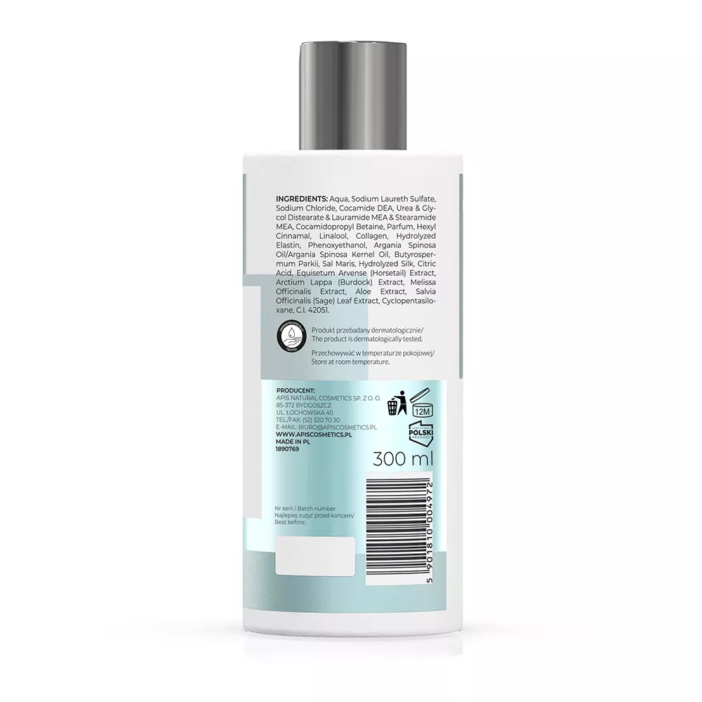 Apis Optima to szampon stworzony z myślą o włosach suchych i zniszczonych. Dzięki innowacyjnej formule wzbogaconej minerałami z Morza Martwego oraz marokańskim olejkiem arganowym, produkt ten intensywnie nawilża włosy, nie obciążając ich. Zawartość kolagenu morskiego, protein jedwabiu i ekstraktu z aloesu zapewnia wyjątkową pielęgnację, wzmacniając włosy od wewnątrz i głęboko je odżywiając. Rezultatem są zdrowe, lśniące i miękkie w dotyku włosy. Dodatkowo, szampon chroni przed negatywnym wpływem czynników zewnętrznych.