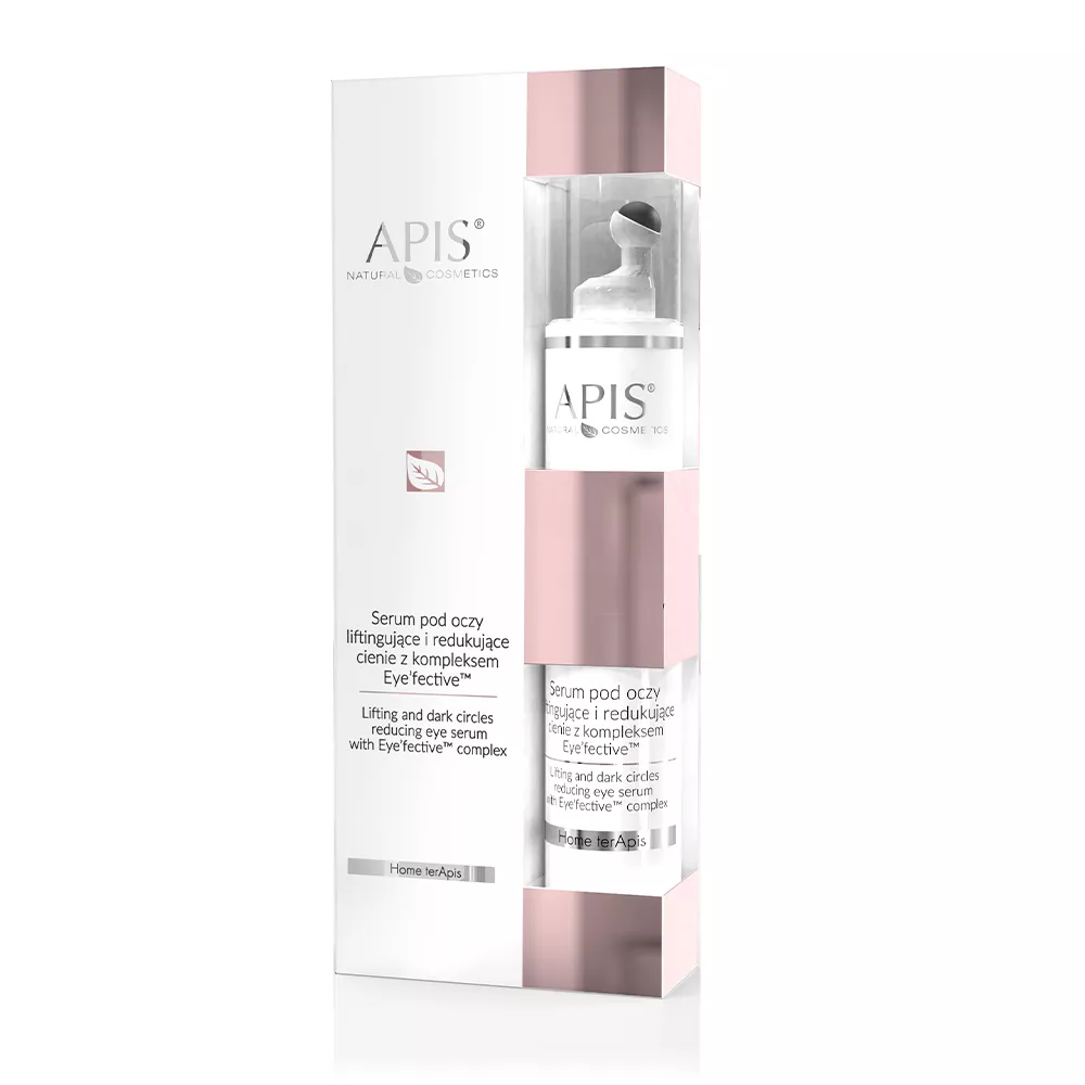 Odkryj niesamowite właściwości serum pod oczy Apis, stworzone specjalnie dla dojrzałej skóry wymagającej redukcji cieni, ujędrnienia i wygładzenia. To wielozadaniowe serum zawiera innowacyjny kompleks Eye'fective™, który skutecznie redukuje cienie pod oczami, poprawiając przepuszczalność naczyń krwionośnych oraz mikrokrążenie. Dzięki temu serum działa liftingująco, zmniejszając opadanie górnej powieki, co sprawia, że skóra wokół oczu jest zregenerowana, nawilżona, wygładzona i promienieje zdrowym blaskiem.