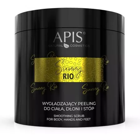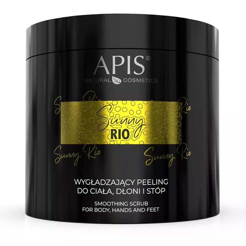 Ciesz się idealnie wygładzoną skórą gotową do dalszej pielęgnacji! Apis Sunny Rio to wygładzający peeling do ciała, dłoni i stóp, który wspomoże odżywienie i jędrność Twojej skóry, przenosząc Cię w rytm letniego karnawału. Jego zniewalający zapach łączy orzechowe nuty z delikatnością jaśminu i słodko-słonego karmelu, dostarczając wrażeń wszystkim zmysłom. Ekstrakt z jaśminu, kokosa i migdałów w połączeniu z odżywczym olejem kokosowym zadba o nawilżenie i jędrność Twojej skóry, przypominając o wymarzonym lecie, muzyce i niekończącej się zabawie. Zafunduj sobie wakacyjne SPA w tropikalnym stylu, zawsze gdy masz na to ochotę.