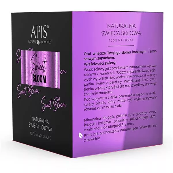 Odkryj magię relaksu z naturalną świecą sojową Apis Sweet Bloom, która wniesie zmysłowy nastrój do Twojego domu lub łazienki. Ta wyjątkowa świeca o pojemności 220g łączy w sobie delikatne kwiatowe nuty jaśminu, bergamotki, wanilii oraz drewna cedrowego, tworząc niepowtarzalny aromat, który odpręży i zrelaksuje Twoje zmysły. Wykonana z wosku sojowego, stanowi ekologiczną alternatywę dla tradycyjnych świec parafinowych, redukując ilość sadzy i dwutlenku węgla podczas spalania.