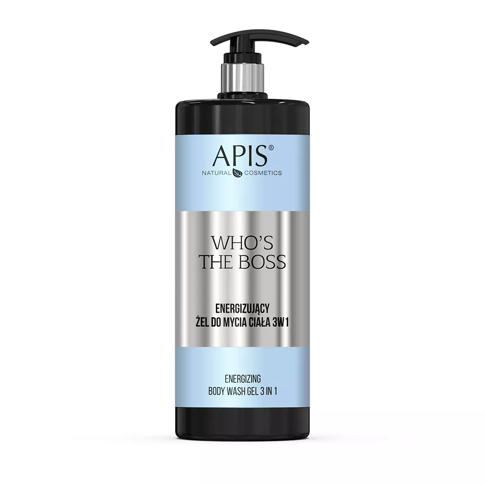 Apis Who's the Boss Energizujący żel do mycia ciała 3w1 to wyjątkowy produkt stworzony z myślą o mężczyznach, którzy cenią sobie kompleksową pielęgnację. Żel charakteryzuje się zniewalającym i długotrwałym zapachem, idealnie nadającym się do codziennego użytku. Dzięki zawartości aktywnych substancji myjących oraz odżywczo-nawilżających, takich jak kwas hialuronowy, d-panthenol, kompleks Hydromanil™ i ekstrakty z aloesu, lnu oraz żeń-szenia, produkt doskonale myje, odświeża, odżywia i nawilża zarówno skórę, jak i włosy.