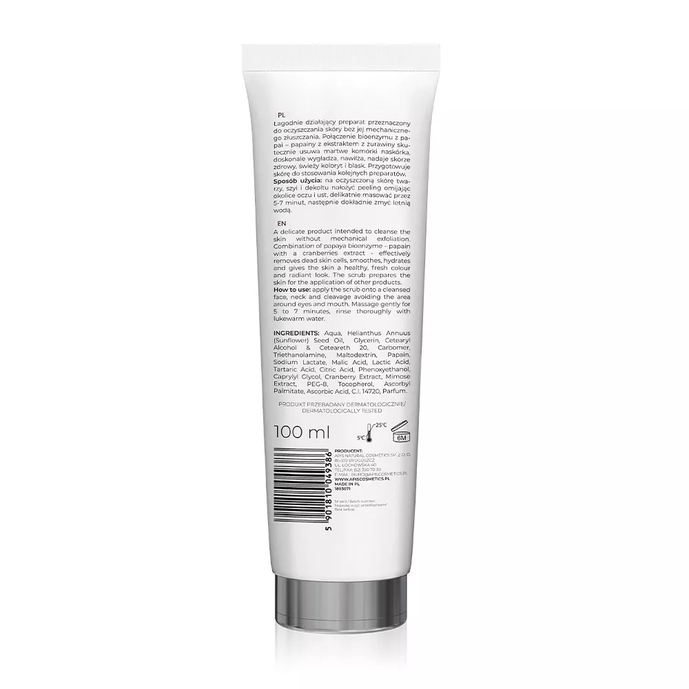 Apis Żurawinowa witalność, Enzymatyczny peeling to łagodnie działający preparat stworzony z myślą o oczyszczaniu skóry każdego rodzaju bez potrzeby mechanicznego złuszczania. Dzięki unikalnemu połączeniu bioenzymu z ananasa - bromealiny, ekstraktu z żurawiny oraz kompleksu kwasów AHA, peeling skutecznie usuwa martwe komórki naskórka, jednocześnie wygładzając, nawilżając i nadając skórze zdrowy, świeży koloryt oraz blask.