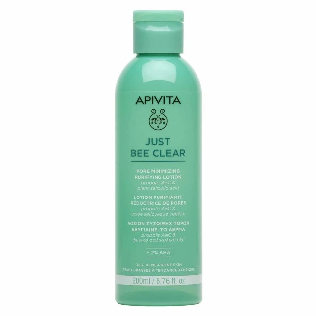 Apivita Just Bee Clear Pore Minimizing Purifying Lotion to innowacyjny, matujący tonik oczyszczający stworzony specjalnie dla cery tłustej i trądzikowej. Jego ultralekka, wodnista formuła zapewnia odświeżenie i komfort, pozostawiając skórę wyraźnie wygładzoną, oczyszczoną oraz zmatowioną już po pierwszym użyciu.
