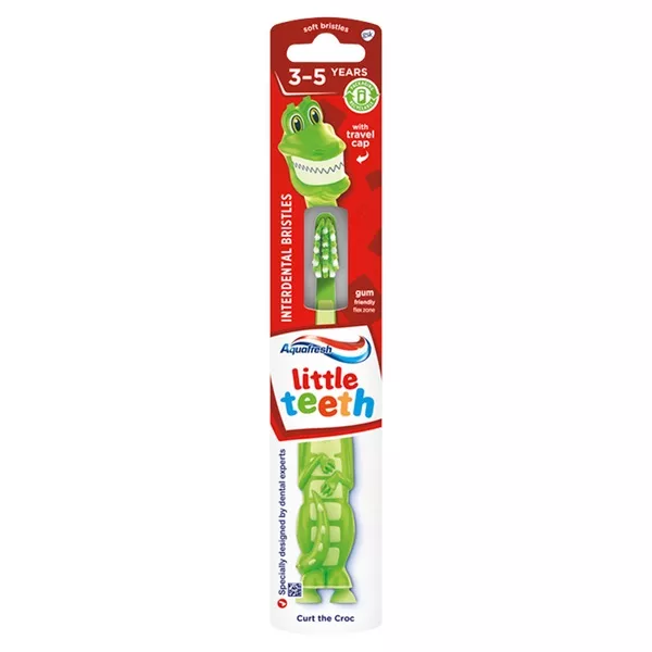 Szczoteczka do zębów Aquafresh® Little Teeth została specjalnie opracowana przez lekarzy dentystów dla dzieci w wieku 3-5 lat. Cała paleta kolorowych postaci angażuje oraz zachęca dzieci do szczotkowania zębów.