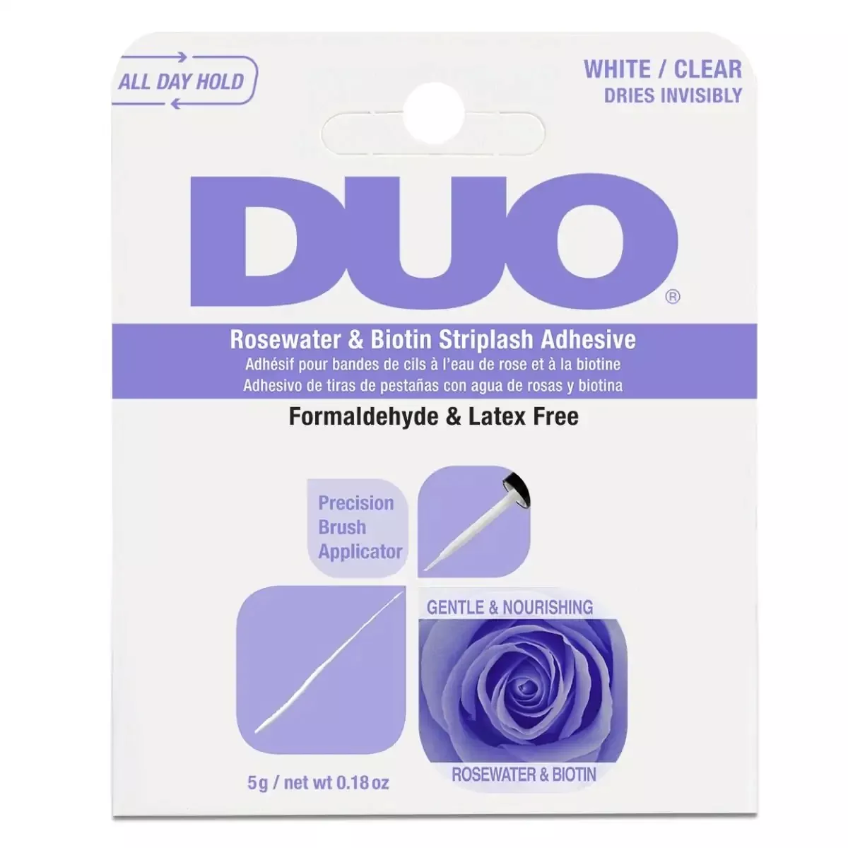 Odkryj moc natychmiastowej metamorfozy swoich oczu dzięki Ardell Duo Rosewater & Biotin Striplash Adhesive - najlepiej sprzedającemu się, wysokowydajnemu klejowi do rzęs na świecie. Ten luksusowy klej oferuje podwójnie odżywczą formułę, która łączy w sobie piękno i odnowę biologiczną. Zawiera biotynę, która wzmacnia i odżywia rzęsy, a także wodę różaną, która łagodzi delikatną okolicę oczu. To idealne rozwiązanie dla osób z wrażliwymi oczami, a także dla początkujących w aplikacji rzęs.