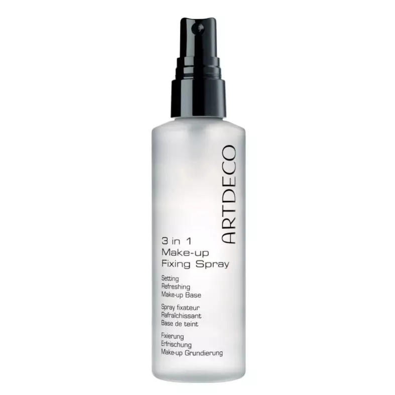 Twój makijaż musi wytrzymać całą noc? Nie chcesz w ciągu dnia go poprawiać? W takim razie utrwal go. Przyda Ci się z pewnością spray utrwalający makijaż ArtDeco 3in1 Fixing Spray. Mgiełka tworzy na skórze transparentny film ochronny, dzięki czemu trwałość makijażu zostaje przedłużona. Możesz używać też sprayu w roli bazy pod podkład. Mgiełka przyjemnie pachnie, ale zapach nie jest intensywny. Dodatkowo spray nawilża i odświeża.